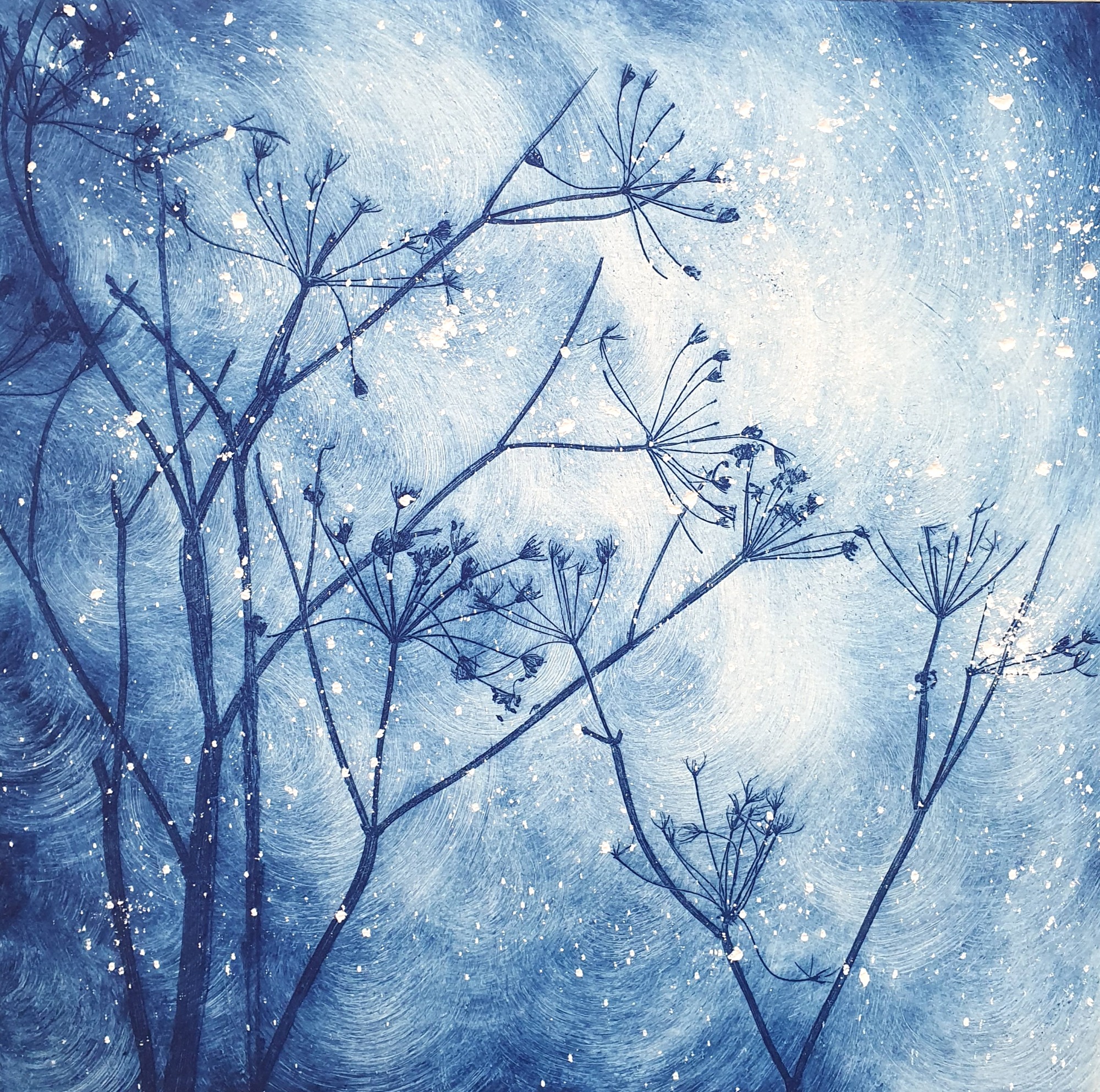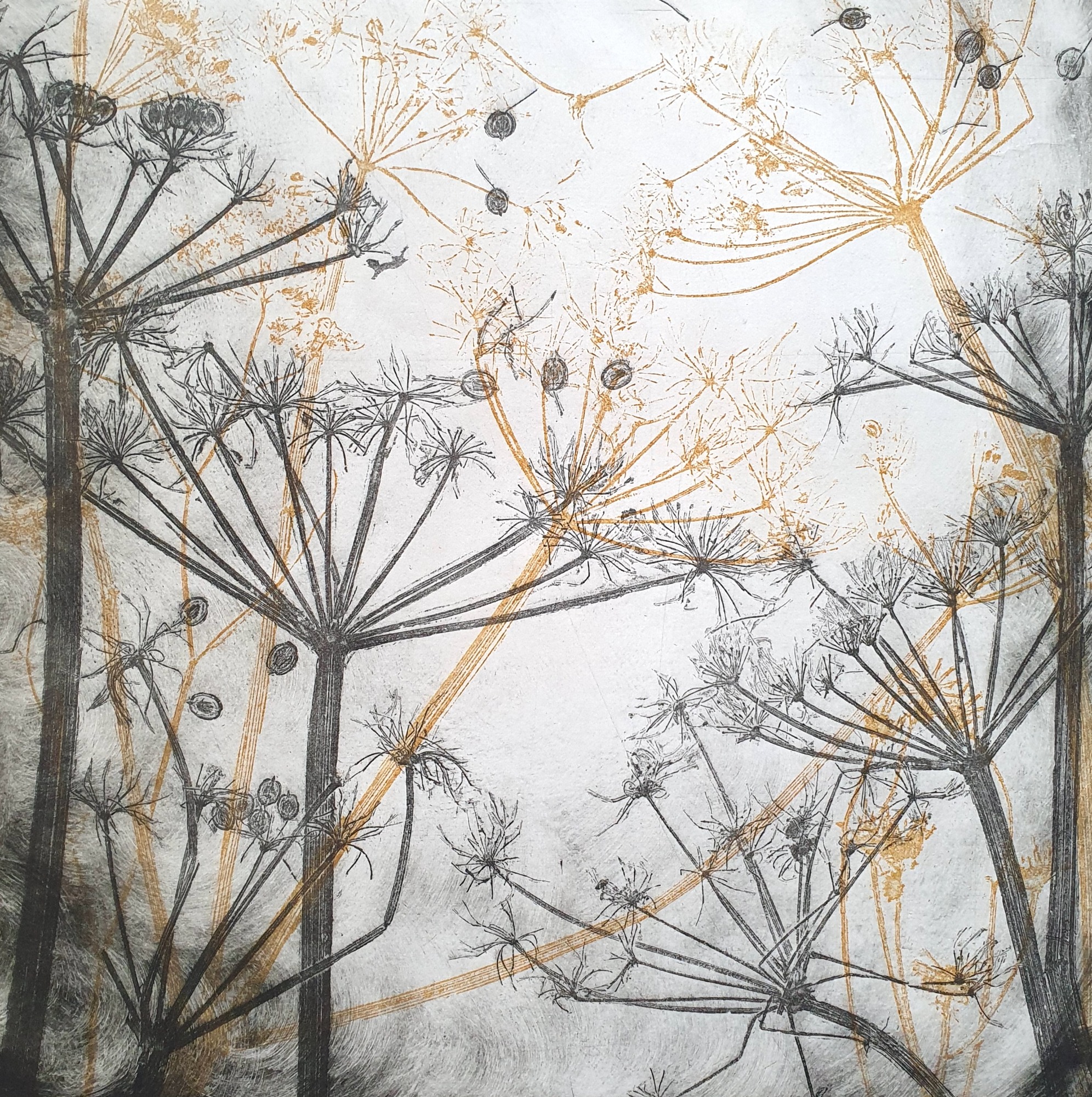 occasionally aquatint. My etchings are mainly produced using imprints of real plants and flowers with the soft ground technique, which I sometimes enhance with drawn elements and occasionally aquatint.