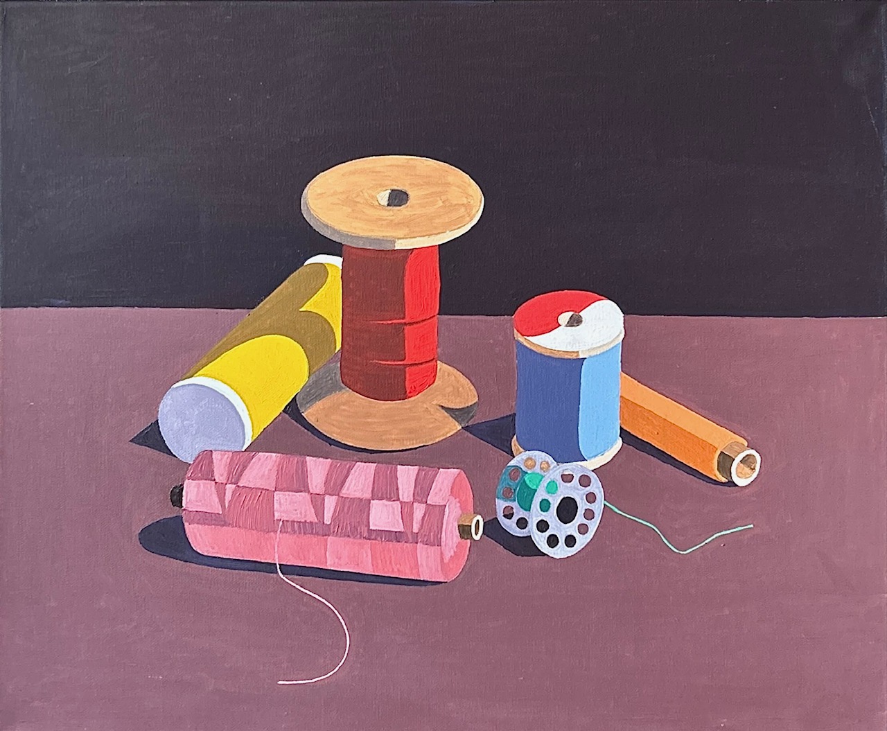 Varied are the subjects which form the basis of my oil paintings but what unifies them is the attempt to create bold, striking images of highly tangible three dimensional objects from flat colour planes: realism using the pictorial language of abstraction to achieve a boiled down essence.